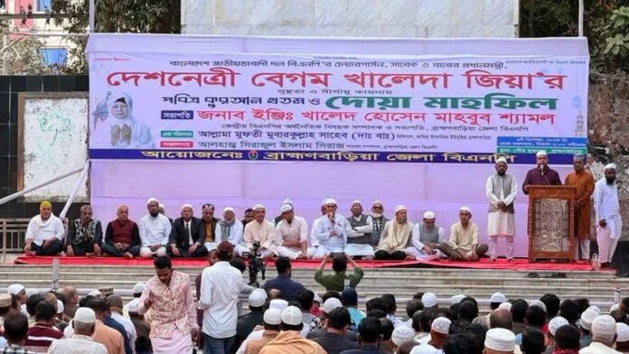 এ সময় বক্তারা বলেন, বেগম খালেদা জিয়া গণতন্ত্রের প্রতীক ও জাতির কণ্ঠস্বর। আল্লাহর কাছে প্রার্থনা করি, তিনি যেন দ্রæত সুস্থ হয়ে আমাদের মাঝে ফিরে আসেন। আমরা বিশ্বাস করি, জনগণের দোয়া বিফলে যাবে না, দেশনেত্রী দ্রæত সুস্থ হয়ে আবারও জনগণের মাঝে ফিরে আসবেন।